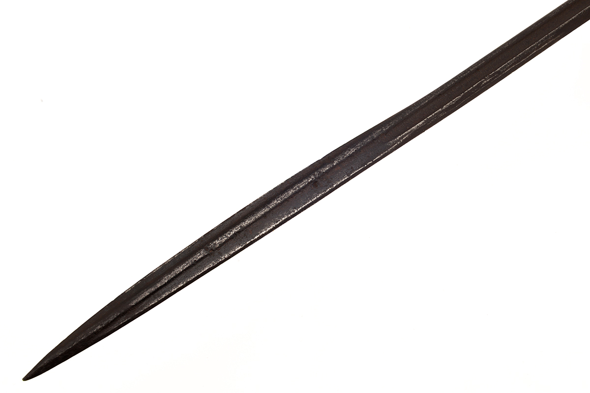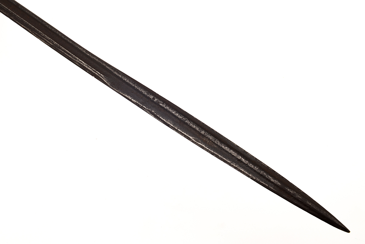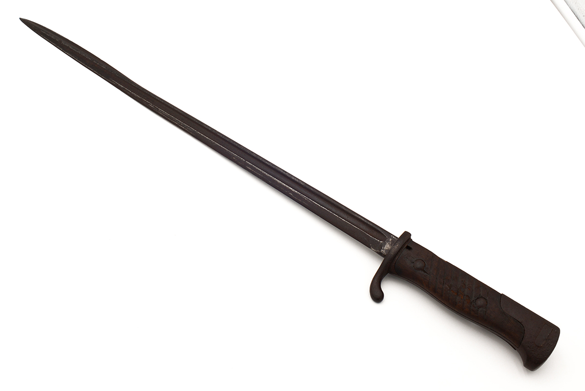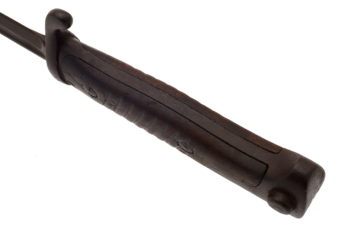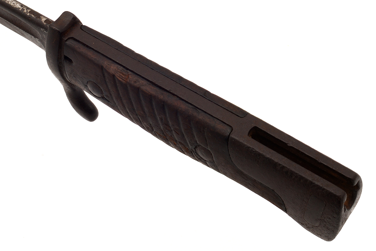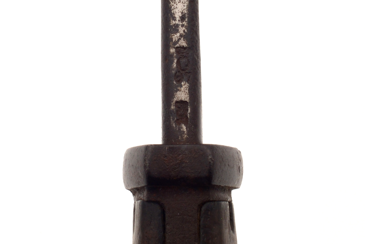 This is a German M1898 n/A bayonet by C.G. Haenel Suhl for the Mauser Gewehr 98 rifle. It features a 20.25" blade often called a "Quillback" or "Pipeback" due to the round spine that runs down it like the quill of a feather. It measures 25.5" in total length and is marked "C.G. HAENEL SUHL" on the ricasso and dated "07" on the spine indicating a 1907 manufacture date. Overall condition is poor but the edge appears to be original, the metal is pitted with lots of patina and the wood grips are very worn. The press stud is rusted into place and so it probably won't lock onto the bayonet lug. There is no scabbard included with this bayonet. Buy online today!
