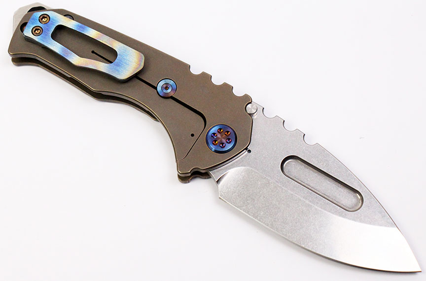 This is the ORIGINAL Praetorian design size. The Knife was made in its current full size as a printing fluke as a novelty! Who knew it would take the knife world by storm? This was the predetermined size of the design. The Praetorian Genesis is for that “This one is too big, this one is too small” knife nut. The Praetorian Genesis is that middle ground that looks as bad-ass as ever and wont spook Democrats in your presence but is still large enough for nearly anything. Folding blade steel comes S35VN standard.