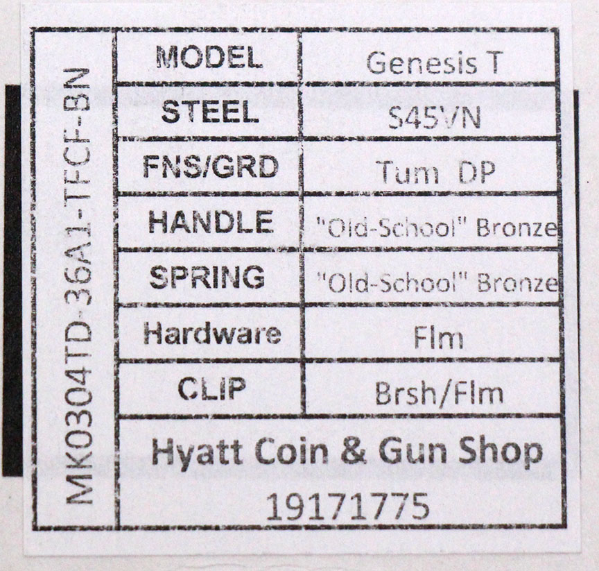 - Medford Prae Genesis T S45VN Old School Bronze Folding Knife
