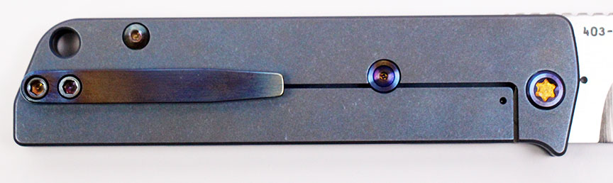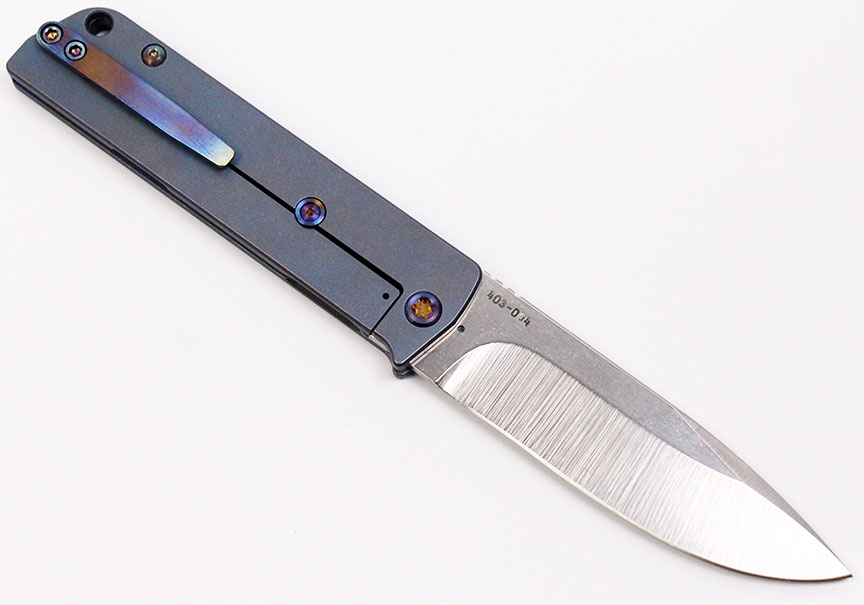 A gentlemanly sized forward flipper. It’s a first for us. Its name is derived from the Ancient Greek word for “thumb.” With 1/8” handle slabs and blade, you’ll find this slender knife disappears when in your pocket. When deployed it’s a full sized straight forward tool.