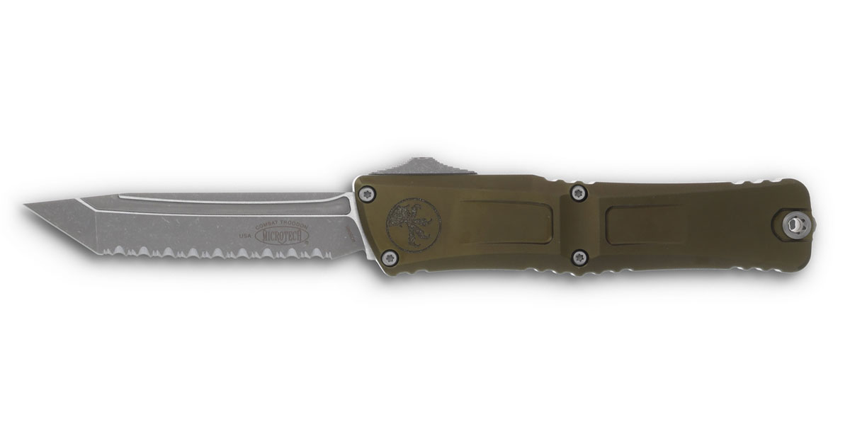 Microtech Combat Troodon Gen III Serrated Tanto Apocalyptic OTF Knife - OD Green