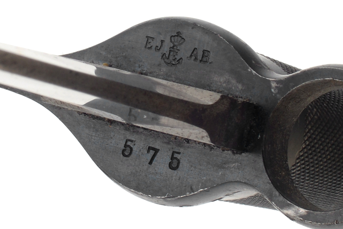 This is a Swedish M1896 bayonet for the M96, M38 or the AG42B Ljungmann Rifle. It features an 8.25" blade with metal handle and manufactured by Eskilstuna Jernmanufactur AB. The overall condition of the bayonet is fair as the edge has been sharpened and the blade has scuff marks. The guard, hilt and pommel have some wear to the bluing and light patina. There is no scabbard included with this bayonet. Buy online today!