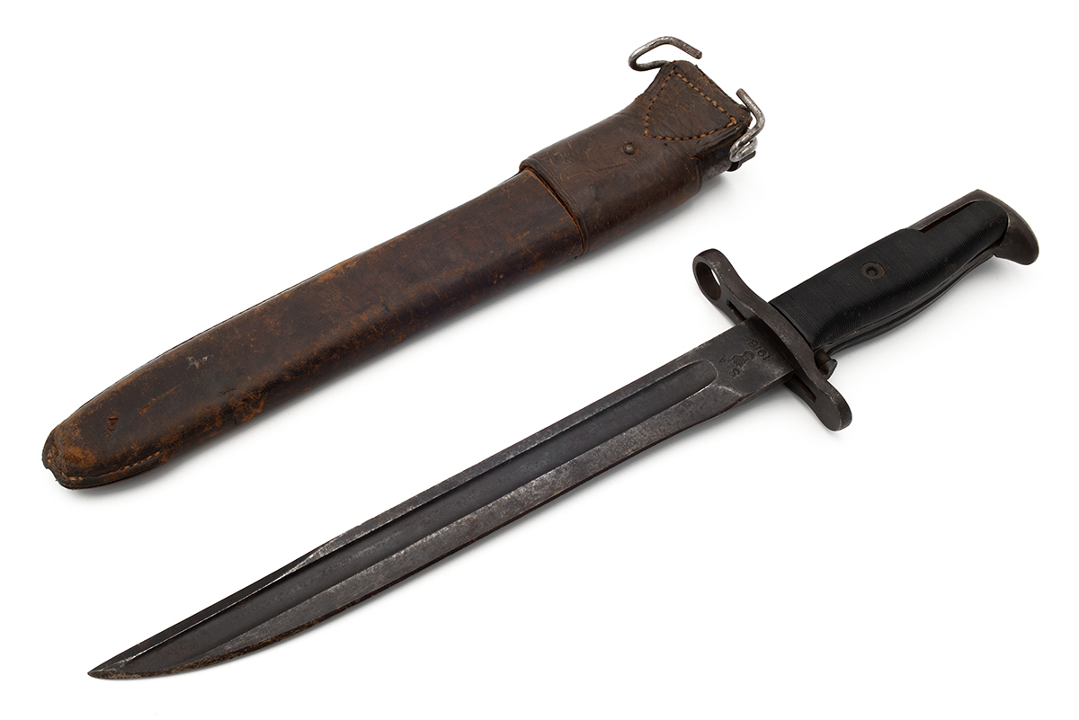 - WW2 Springfield Armory M1905 M1 Bayonet With Rare Leather Scabbard - Vintage Bayonet